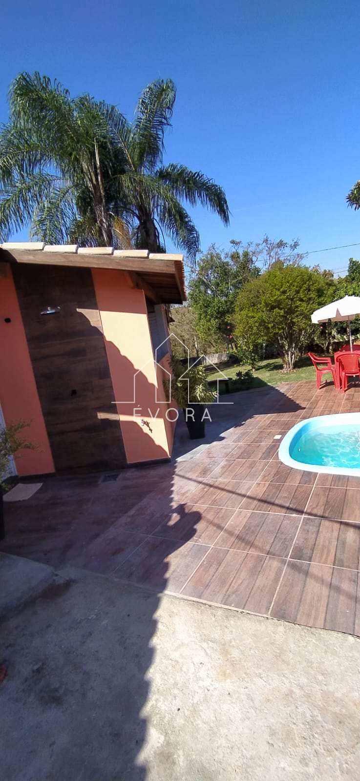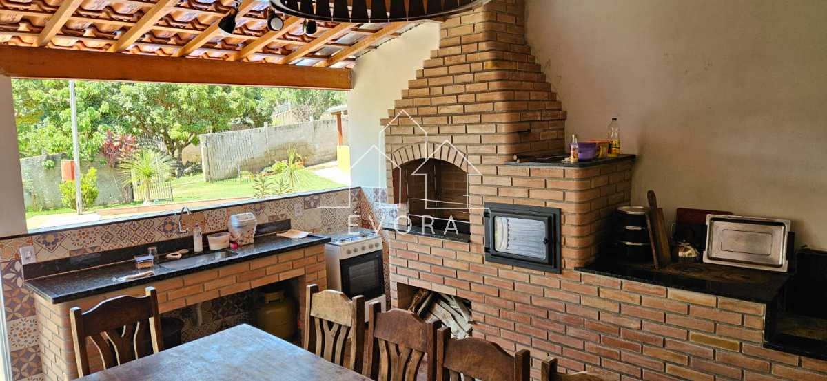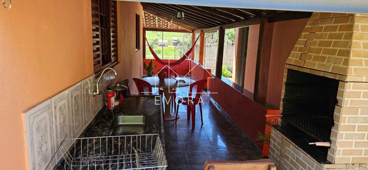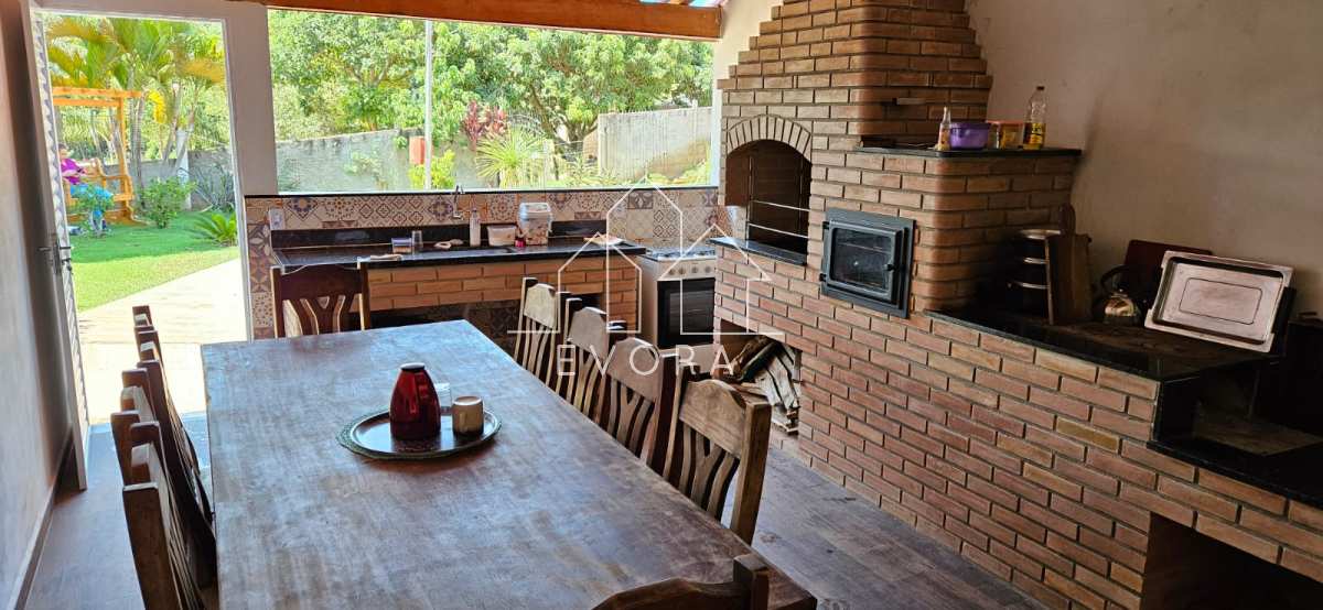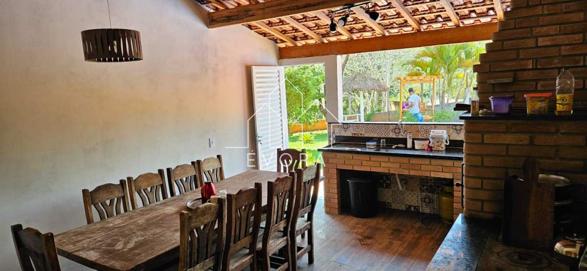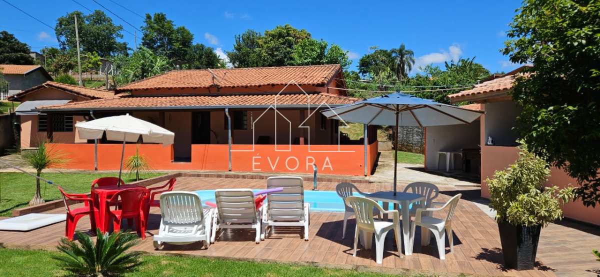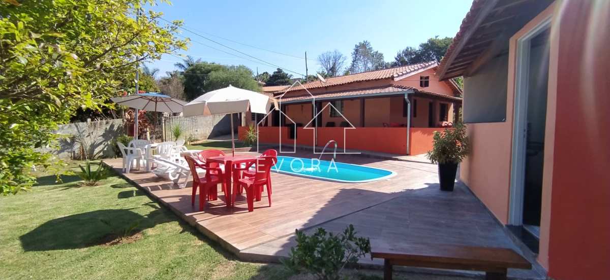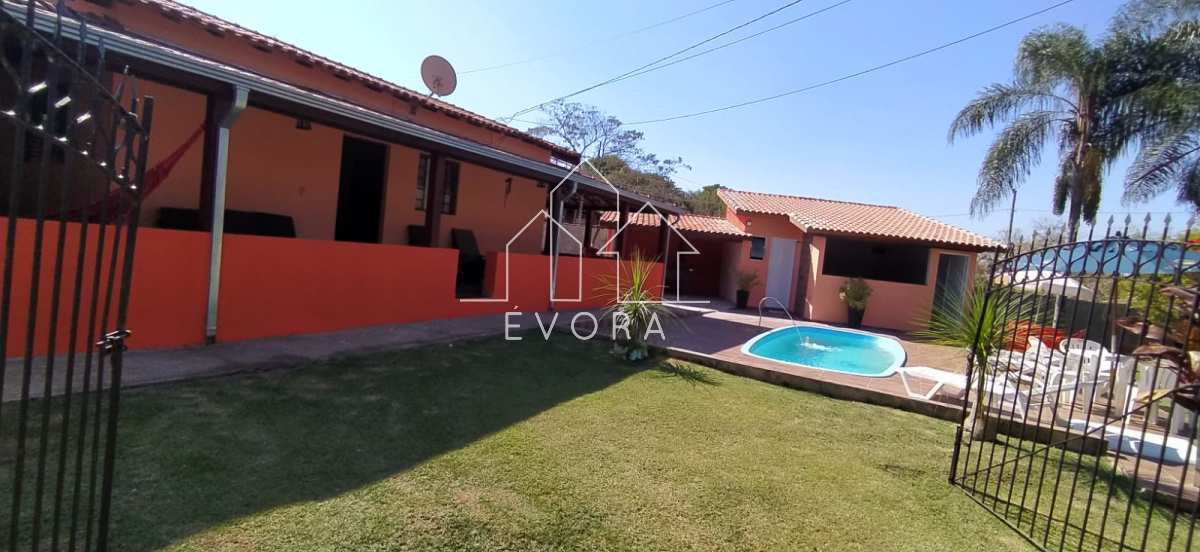 Casa com 3 quartos, sala, banheiro, piscina, área gourmet, sala de jogos, 2 poços, pomar, tem internet, chácara toda murada, 2 banheiros do lado de fora;